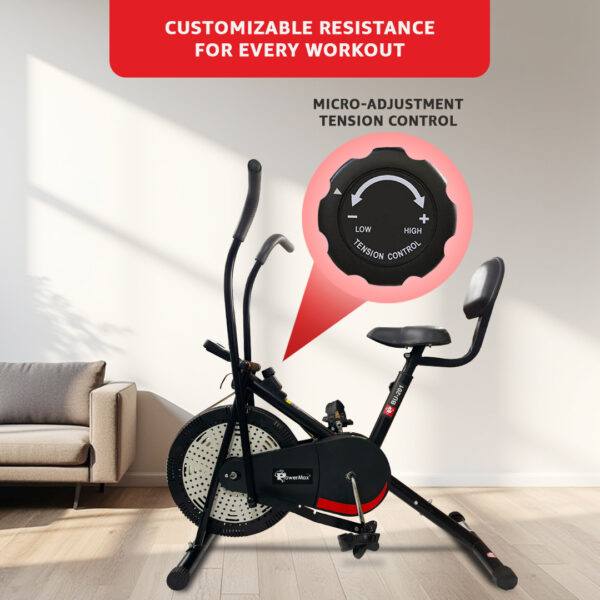 PowerMax Fitess BU-201 Dual Action Air Bike with Back Support System will let you experience a complete cardio routine without leaving the comfort of your home.